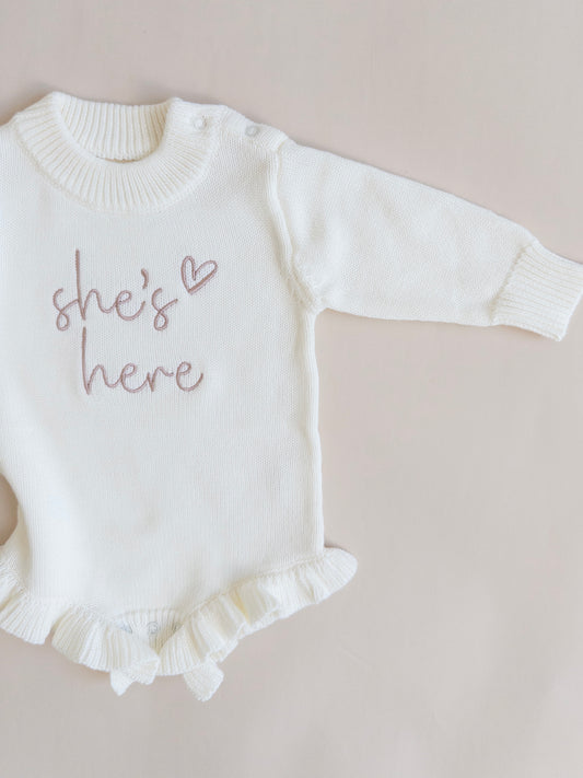 She's Here Frill Knit Romper - Cloud