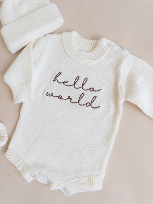 Hello World Knit Romper - Cloud