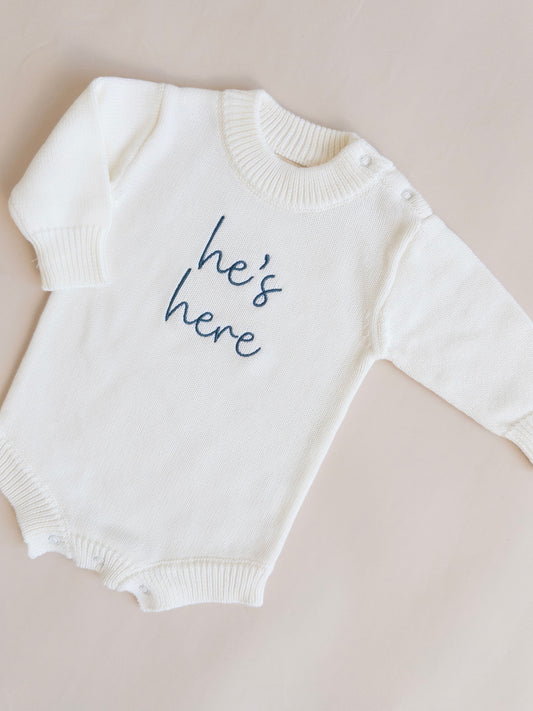 He's Here Knit Romper - Cloud