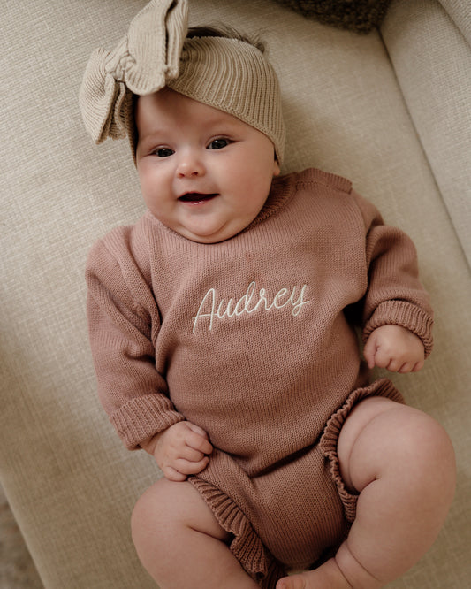 Frill Leg Knit Romper - Vintage Rose