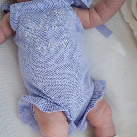 He's Here Summer Knit Romper - Sky