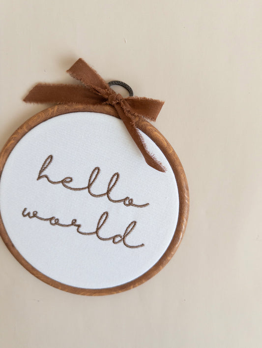 Hello World Embroidered Hoop Sign