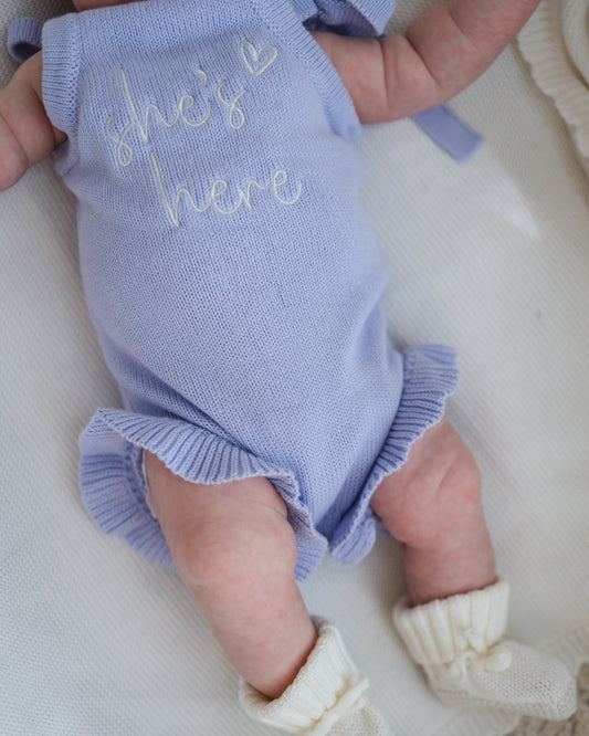 She's Here Frill Leg Summer Knit Romper - Lavender
