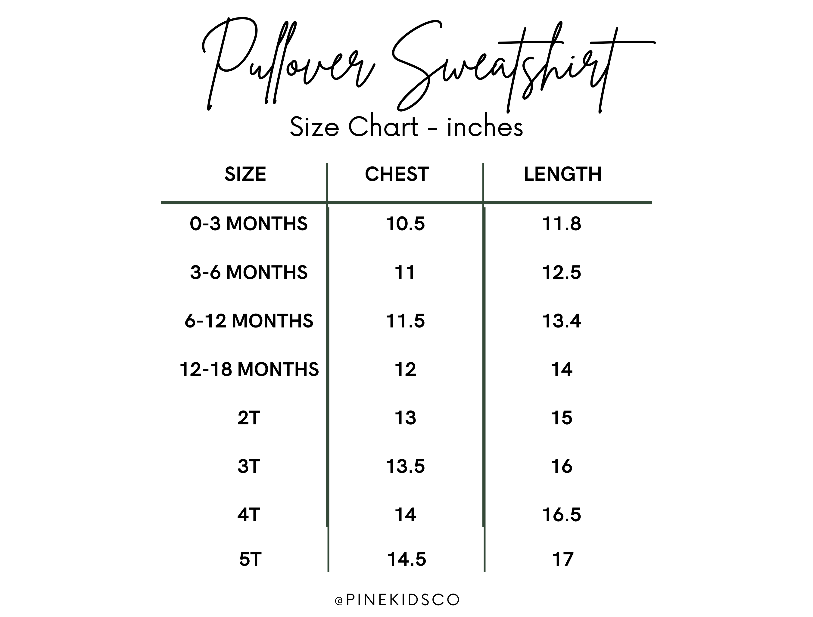 Each item is custom and made to order so slight variations may occur. Lettering size may vary slightly depending on shirt size, font chosen, and length of personalization. If you have a specific request in mind, or would like to see a proof prior to ordering, please message us at info@pinekidsco.com